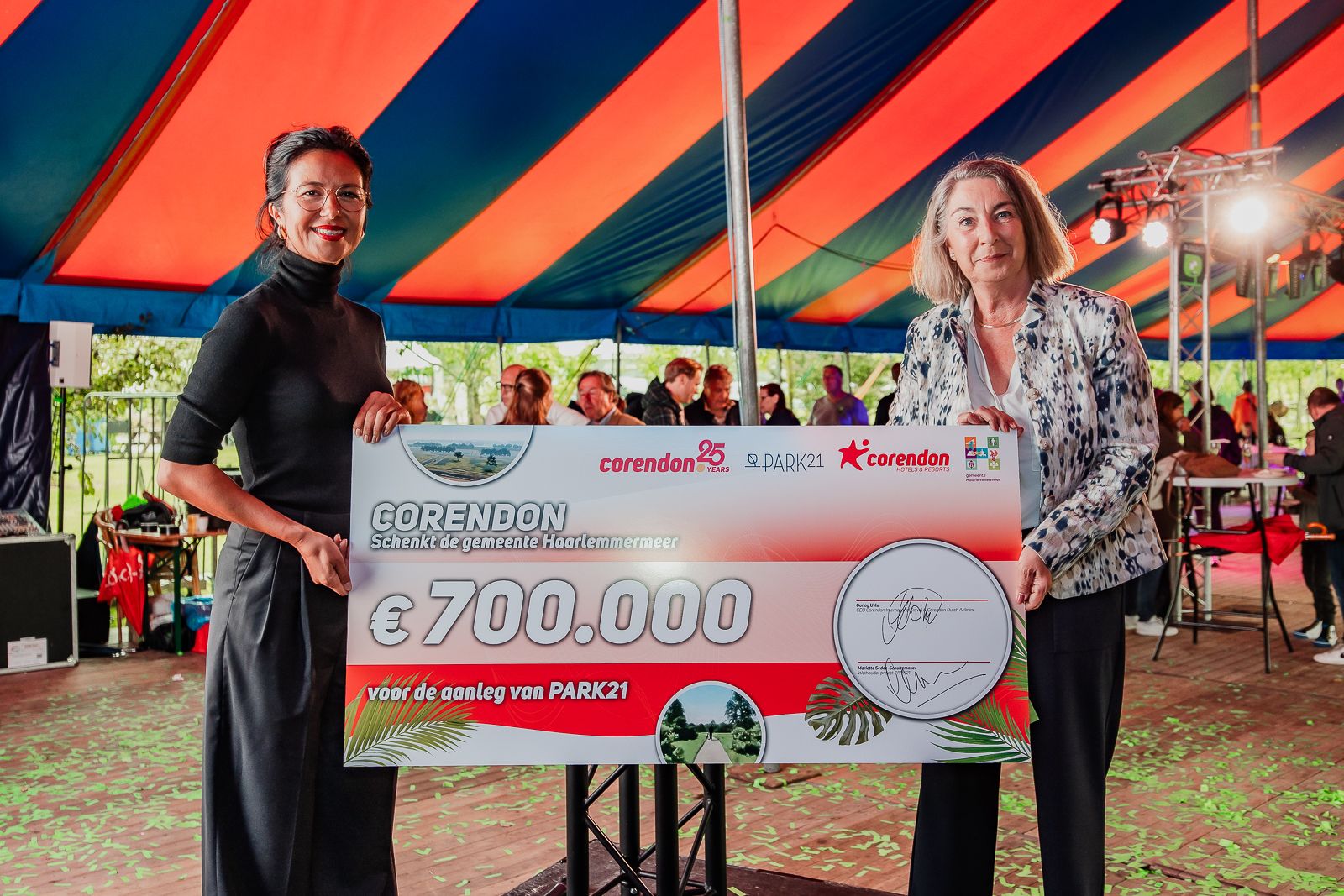 Ter gelegenheid van het 25-jarig jubileum schenken reisorganisatie Corendon en Corendon Hotels & Resorts 700.000 euro aan de gemeente Haarlemmermeer voor de aanleg van PARK21. De donatie wordt specifiek ingezet voor de ontwikkeling van het deelgebied Groot Vennep in PARK21. Met deze bijdrage wil het bedrijf iets terugdoen voor de regio, waar het al jaren actief is.