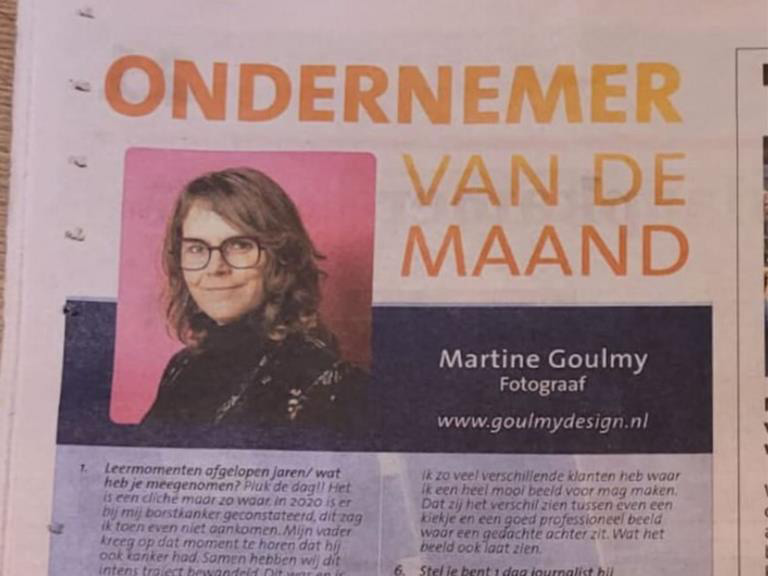 Martine Goulmy is niet alleen een gepassioneerde fotografe, maar ook een veerkrachtige en visionaire persoonlijkheid die haar leven en carrière heeft gewijd aan het vastleggen van de essentie van momenten en mensen. Na persoonlijke uitdagingen, waaronder een strijd tegen borstkanker, leeft Martine volgens het motto “Pluk de dag”. Deze filosofie is diep verankerd in haar werk en leven, waar ze geen moment onbenut laat om haar dromen te verwezenlijken en haar passie voor fotografie te delen. Lees hier het hele verhaal:
